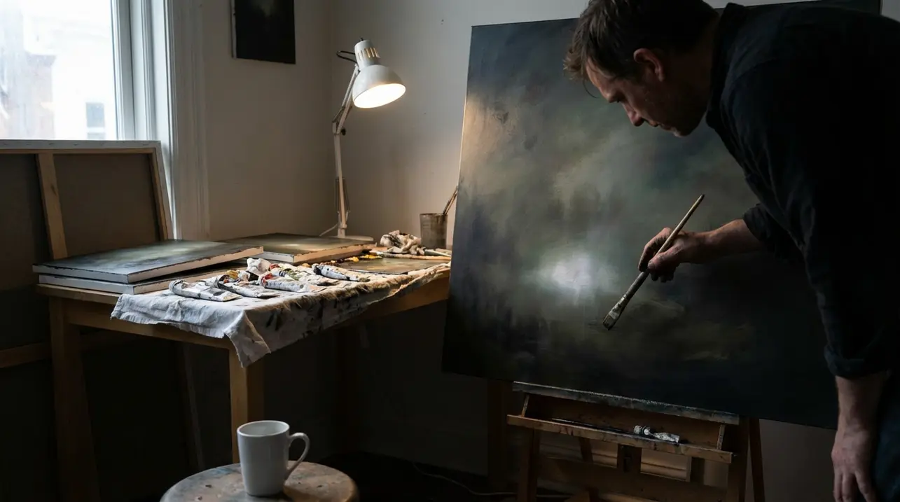 Gideon Kiefer’s atmospheric oil paintings generate a profound sense of creative potential, akin to the promise of a blank digital canvas, yet rooted in the tactile reality of pigment and brushstroke. His work occupies a liminal space, blending dreamlike ambiguity with the polished aesthetic of digital rendering, offering a masterclass in mood and narrative suggestion.In his latest exhibition, serene meadows are illuminated by small, controlled fires, their glow warming twilight skies. Solitary figures appear not as focal subjects, but as organic components of the landscape—human forms contemplating phenomena that feel just beyond the edge of consensus reality.Kiefer employs a misty, soft-focus technique that echoes the ‘ethereal mystery’ of AI-generated imagery, yet it is fundamentally anchored by the physicality and intention of classical painting. This positions his work at the heart of a vital contemporary dialogue.As the creative community increasingly adopts generative AI for conceptual brainstorming, Kiefer represents a compelling counterpoint. He uses traditional skill to simulate the uncanny, prompting a reevaluation of ‘atmosphere’ in a post-digital world.The fires in his fields function as emotional data points, visual algorithms for evoking wistful isolation or quiet awe. While generative art explores the frontiers of code, Kiefer’s practice serves as a crucial anchor, demonstrating that the most potent esoteric visions still emerge from a synergy of human intention, mastered technique, and a dialogue with the medium itself. His paintings provide no easy answers; instead, they offer a breathtaking interface for deeper inquiry, proving that the most advanced creative tool can sometimes be a rediscovery of how to make traditional methods speak a new and profoundly resonant language.