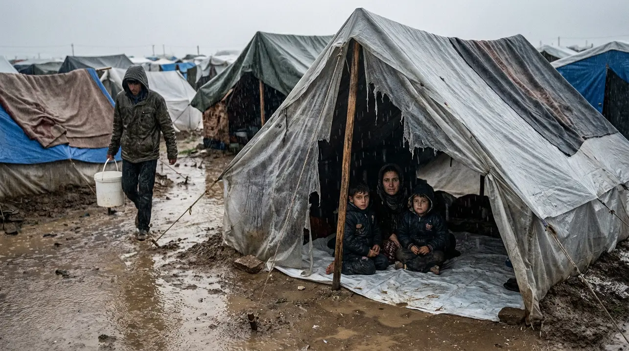 加沙流离失所者在脆弱帐篷中忍受暴雨与严寒