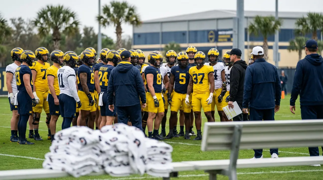 密歇根大学橄榄球队首次碗赛训练,贾斯蒂斯·海恩斯缺席